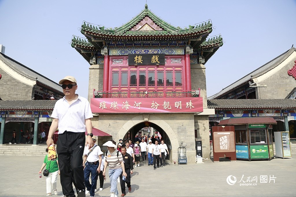 天津古文化街位于海河西岸,是國家5A級旅游景區(qū)、津門十景之一。5月16日,旅客從古文化街的戲樓走出。人民網 崔新耀攝