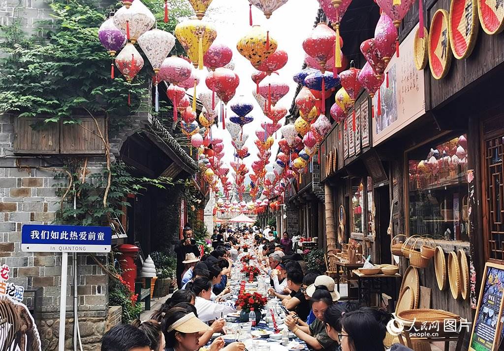 5月19日,寧波市寧??h前童古鎮(zhèn)豆腐節(jié)長桌宴,吸引八方來客。人民網 章勇濤攝
