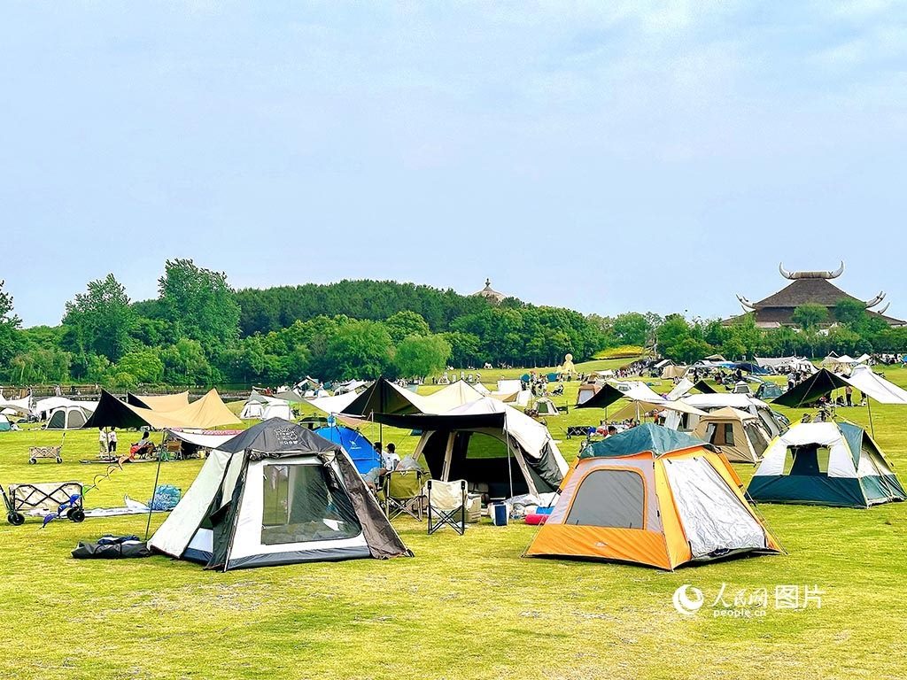 5月13日,眾多游客在位于武漢市黃陂區(qū)王家河鎮(zhèn)的木蘭草原景區(qū)露營。人民網記者 張沛攝