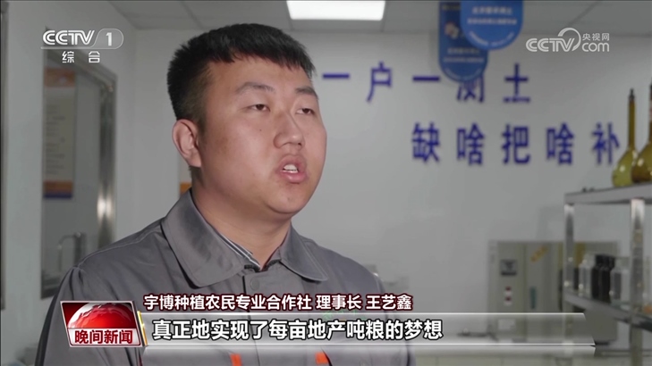 宇博種植農(nóng)民專業(yè)合作社 理事長(zhǎng) 王藝鑫:原來的玉米產(chǎn)量每坰地10噸,現(xiàn)在已經(jīng)達(dá)到了每坰地15噸,真正地實(shí)現(xiàn)了每畝地產(chǎn)噸糧的夢(mèng)想。