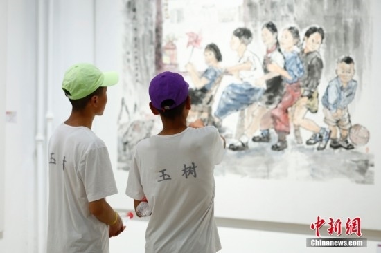中央民族大學(xué)美術(shù)學(xué)院教師姚瑤作當(dāng)天美術(shù)館的講解,接觸孩子們后,她印象最深的就是他們淳樸的眼神。姚瑤說,這次參觀的展覽里匯聚了各種各樣的民族題材,她希望孩子們能在本民族之外,看到還有這么多的生活方式,還有這么多的風(fēng)土人情。
