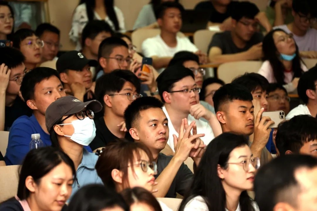 活動(dòng)中,盡管教室內(nèi)溫度很高,可沒有一名學(xué)生中途離開。一名站在過道處聽講的學(xué)生差點(diǎn)暈倒,工作人員把他扶到空調(diào)處休息了一會(huì),感覺好點(diǎn)后,他又繼續(xù)站在人群中聽講。