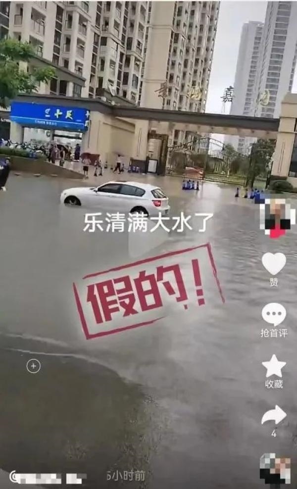 巡查還發(fā)現(xiàn)有網(wǎng)民發(fā)布視頻,標(biāo)有文字“樂(lè)清滿大水了”,內(nèi)容可見(jiàn)有小區(qū)門口積水嚴(yán)重,在道路停放的幾輛汽車被淹至車身一半。經(jīng)核實(shí),該視頻并非發(fā)生在樂(lè)清。發(fā)布視頻的網(wǎng)民陳某某(男,43歲)為吸引眼球捏造事實(shí),在某平臺(tái)賬號(hào)發(fā)布,造成負(fù)面影響,已被警方依法給予行政處罰。