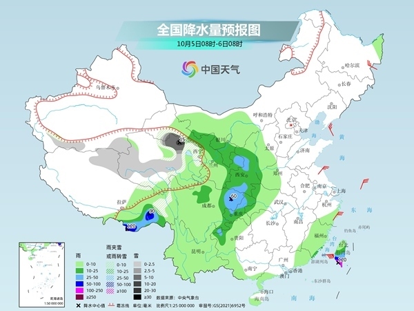 中國天氣網(wǎng)訊 今天(10月3日)白天,華西地區(qū)降雨將有所減少、減弱,但今夜起新一輪降雨過程又將開啟,部分地區(qū)有大雨,局地暴雨;同時青海、甘肅局地有暴雪或大暴雪,需注意防范。氣溫方面,東北地區(qū)等地未來三天將出現(xiàn)降溫。5日至7日,南方氣溫也將下滑,暑熱緩解。
