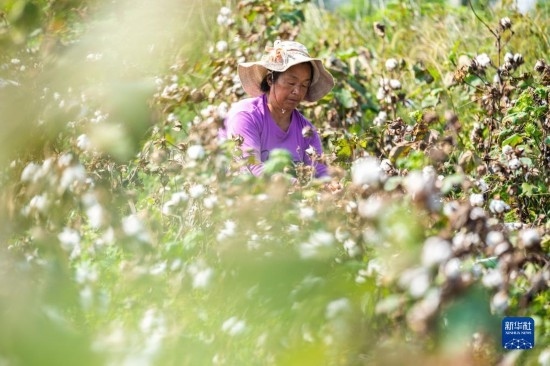 10月15日,棉農(nóng)在南縣浪拔湖鎮(zhèn)太陽山村采收棉花。