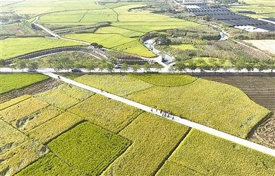 圖③:直播團(tuán)隊(duì)成員走進(jìn)稻田直播普法。