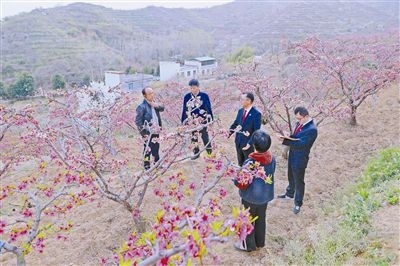 法官與鄉(xiāng)政府、村委會干部實(shí)地查看案涉土地,進(jìn)一步了解案情。