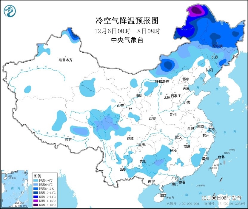 人民網(wǎng)北京12月6日電 (記者溫璐)據(jù)中央氣象臺網(wǎng)站消息,受較強冷空氣影響,昨日我國北方大部地區(qū)出現(xiàn)大風(fēng)、沙塵和降溫天氣。大部地區(qū)陣風(fēng)6~9級,部分地區(qū)風(fēng)力超過10級,西北地區(qū)東部、華北及黃淮多地出現(xiàn)揚沙或浮塵,甘肅武威局地沙塵暴。今晨,內(nèi)蒙古中東部、山西北部、河北西北部及黑龍江西北部等地氣溫下降4~8℃,局地降幅超過10℃。