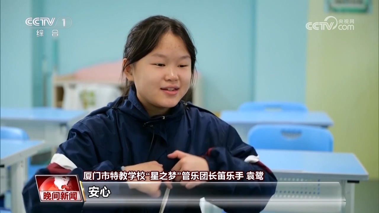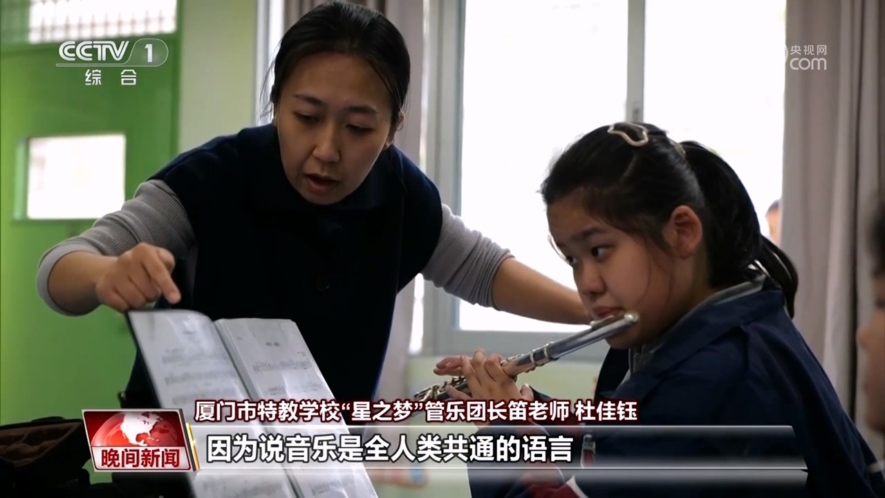 廈門市特教學?!靶侵畨簟惫軜穲F長笛老師 杜佳鈺:因為說音樂是全人類共通的語言,我希望這件事情的意義也是能不要把這些孩子排除在全人類的音樂的共同事業(yè)的范圍之外。