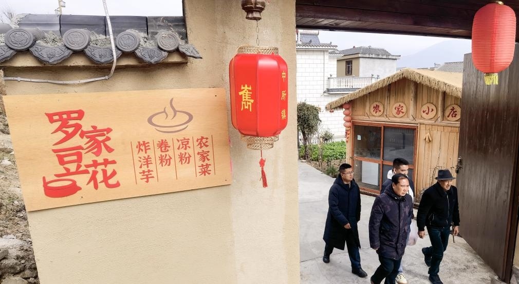 2月3日,在越西縣中所鎮(zhèn)陶家營(yíng)村,游客到羅國(guó)芹家開(kāi)的農(nóng)家樂(lè)用餐。新華社記者 周科 攝