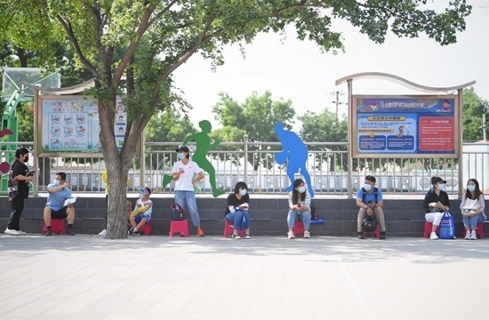 2021年6月12日,北京豐臺二中附屬看丹小學門外,陸續(xù)有家長帶著相關材料排隊等待9點準時開啟的入學信息審核。視覺中國供圖