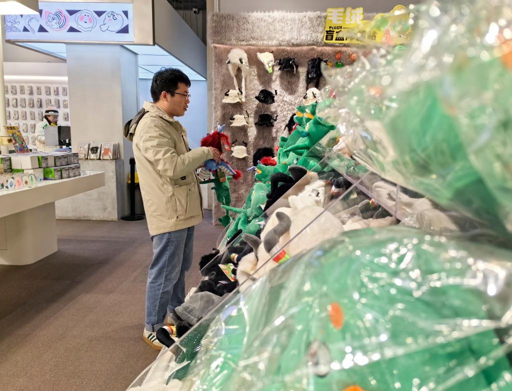 2月2日,游客在甘肅省博物館文創(chuàng)商店挑選文創(chuàng)產品。新華社記者 何問 攝