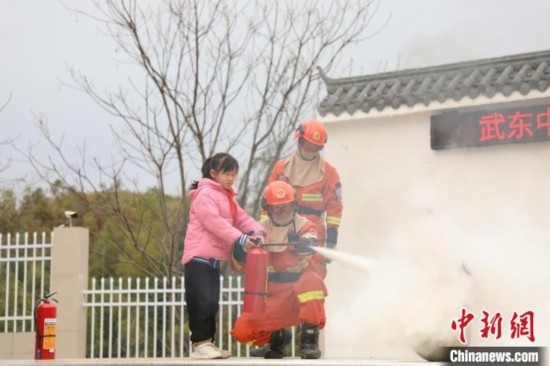 為了提高學(xué)校師生的消防意識,消防員為師生講解手提式干粉滅火器的使用原理,并設(shè)置“火災(zāi)”場景,組織師生實操體驗,讓師生真正掌握滅火器的使用方法。