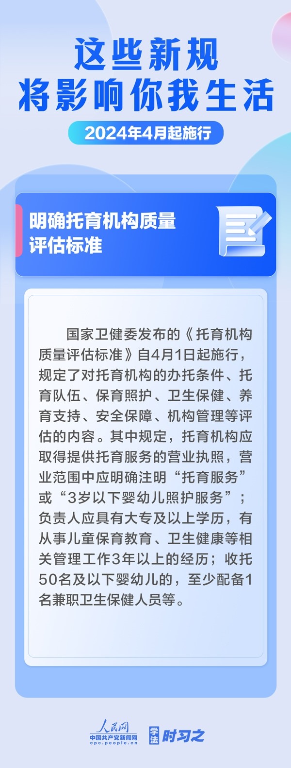加強(qiáng)中央儲(chǔ)備棉管理;明確托育機(jī)構(gòu)質(zhì)量評(píng)估標(biāo)準(zhǔn);規(guī)范可再生能源電量收購(gòu)……4月起,這些新規(guī)施行,將影響你我生活。