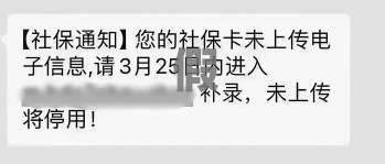 套路一 通過不明號碼打電話或發(fā)送詐騙短信,自稱人社或醫(yī)保部門的工作人員,用“社保卡異常將被強(qiáng)制停用”“社??ㄉ墶薄半娮由绫?▽徍宋赐ㄟ^”等理由,要求持卡人配合處理,索取持卡人的個人信息,誘騙持卡人轉(zhuǎn)賬匯款,實(shí)施詐騙。