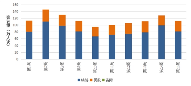 城際總客運(yùn)量總體較前一周明顯回落至113萬人次,環(huán)比下降13%。