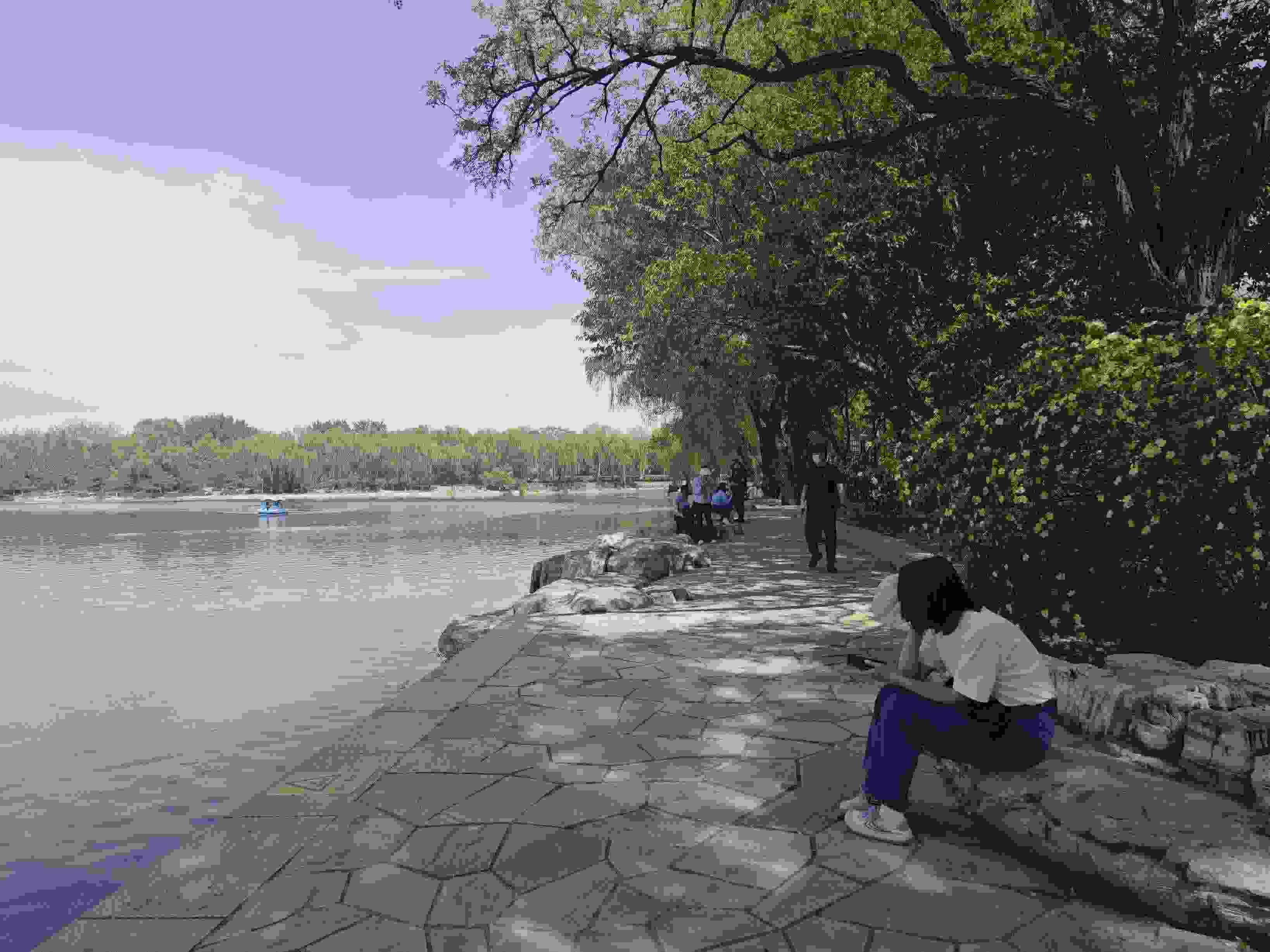 坐在湖邊長(zhǎng)椅上的王先生,正靜靜地享受著屬于他的獨(dú)處時(shí)光。“辦公室里開了一上午會(huì),中午短暫地在公園中坐上一二十分鐘,哪怕只是發(fā)發(fā)呆,都能感受到輕松快樂,這是一天忙碌工作中最珍貴的放松時(shí)光了。”