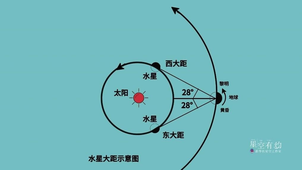 中國天文學(xué)會(huì)會(huì)員、天津市天文學(xué)會(huì)理事楊婧表示,想一睹水星“真容”,要等到它與太陽的角距離達(dá)到最大時(shí),也就是從地球上看水星距離太陽最遠(yuǎn)的位置。如果水星出現(xiàn)在太陽東邊,稱為東大距,此時(shí)水星在黃昏時(shí)的西邊低空出現(xiàn);如果水星出現(xiàn)在太陽西邊,稱為西大距,此時(shí)水星在黎明時(shí)的東方低空出現(xiàn)。每年通常會(huì)有6至7次水星大距,其中包括東大距和西大距。