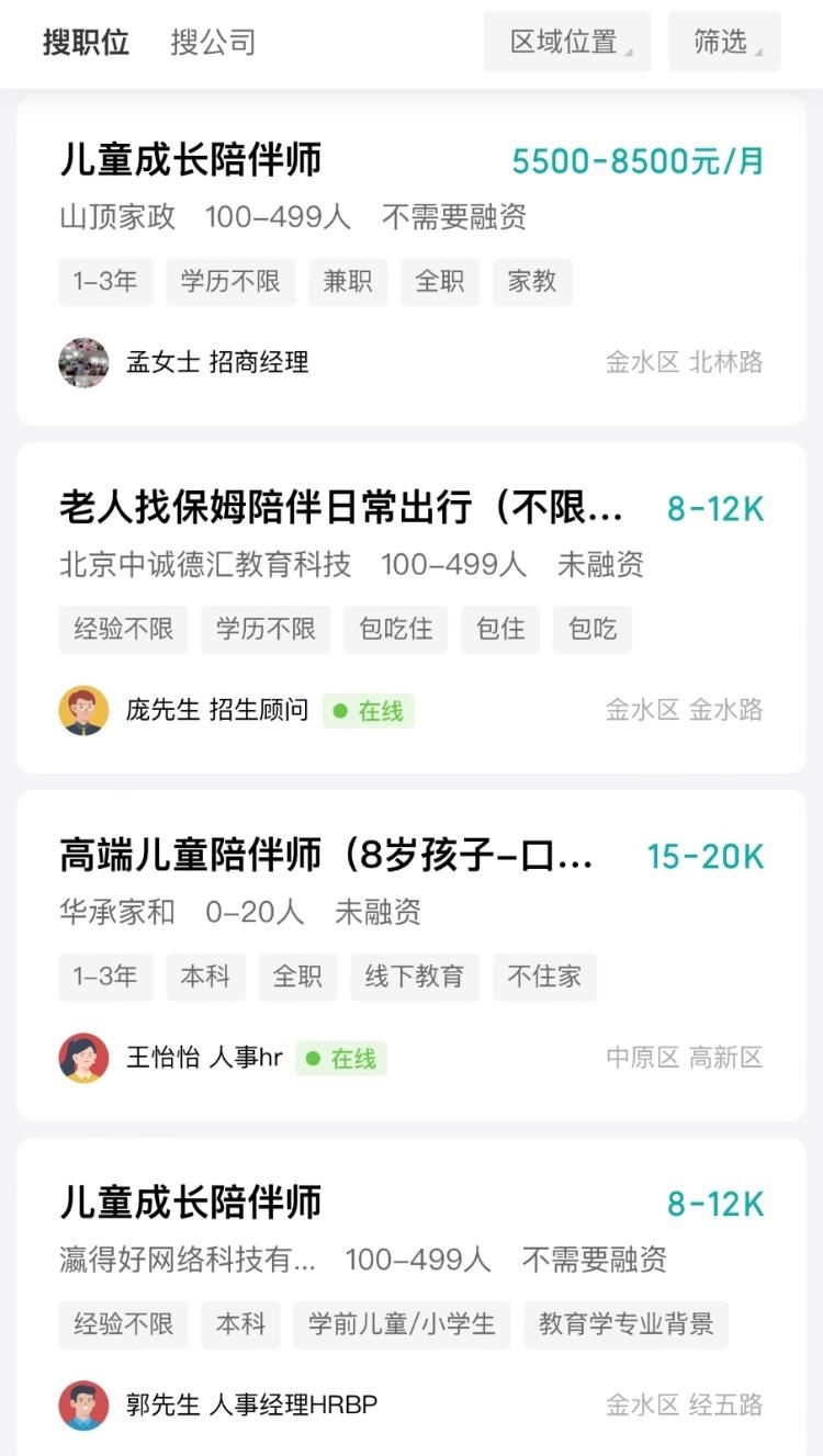 這樣的職業(yè)便是“兒童成長陪伴師”,它以新奇、小眾、高薪等話題被廣泛討論,主打一個“陪伴”——陪孩子學習、運動、玩耍,在陪伴中觀察孩子的習慣并引導調整,因此也被稱為“外包父母”。