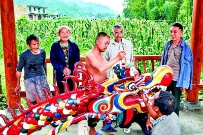 村民給龍舟刷漆點(diǎn)睛。