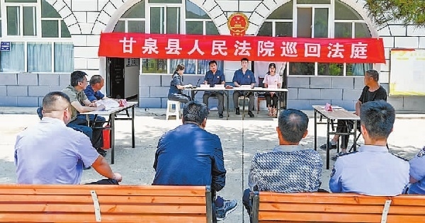 近日,陜西省甘泉縣人民法院道鎮(zhèn)人民法庭在審理一起侵害集體經(jīng)濟(jì)組織成員權(quán)益糾紛案件時(shí),考慮到本案為該區(qū)域多發(fā)常見類糾紛,遂將巡回審判庭搬進(jìn)道鎮(zhèn)五里橋村,在窯洞前就地審理。庭審中,法官充分聽取雙方當(dāng)事人意見,就爭(zhēng)議焦點(diǎn)進(jìn)行釋法明理。經(jīng)過一個(gè)多小時(shí)的調(diào)解,雖因雙方訴求差距過大未最終達(dá)成調(diào)解協(xié)議,但極大緩和了雙方矛盾。下一步,法官將繼續(xù)就雙方當(dāng)事人的訴求研判方案,組織調(diào)解。庭審結(jié)束后,法官向群眾介紹了本案相關(guān)的法律規(guī)定,就大家關(guān)心的法律問題進(jìn)行答疑解惑。圖為巡回審判現(xiàn)場(chǎng)。(本報(bào)記者 劉輝 本報(bào)通訊員 李樂 攝)
