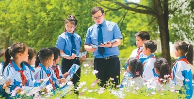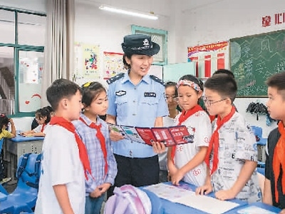 江蘇省海安市公安局城南派出所民警在給該市教師發(fā)展中心附屬小學學生上網絡安全知識課。翟慧勇攝(人民視覺)