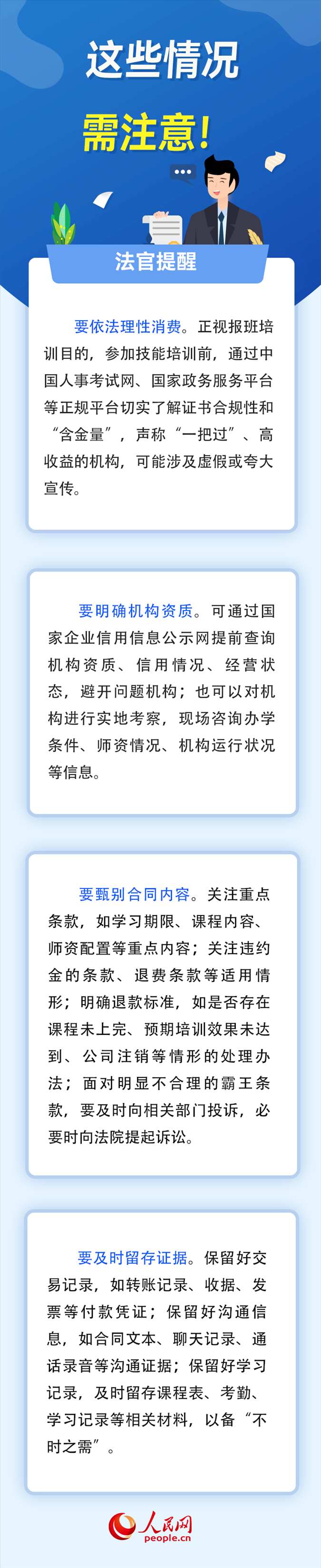 為掌握更多知識技能,“報培訓(xùn)班”成為越來越多人的選擇。然而,部分培訓(xùn)機構(gòu)虛假宣傳、半路關(guān)門、拒不退費等套路讓消費者防不勝防。如何識別培訓(xùn)報班中的“陷阱”、維護(hù)自身權(quán)益?對此,人民網(wǎng)采訪了北京市通州區(qū)人民法院法官助理李志峰。(高清揚 實習(xí)生 李澤華)