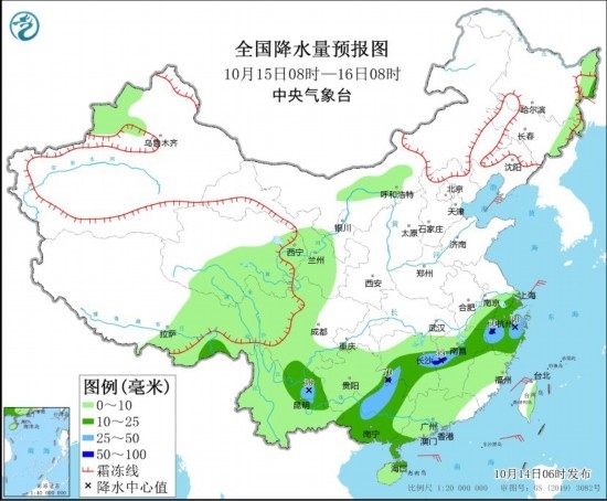 全國降水量預報圖(10月14日8時-15日8時) 圖片來源:中央氣象臺網站
