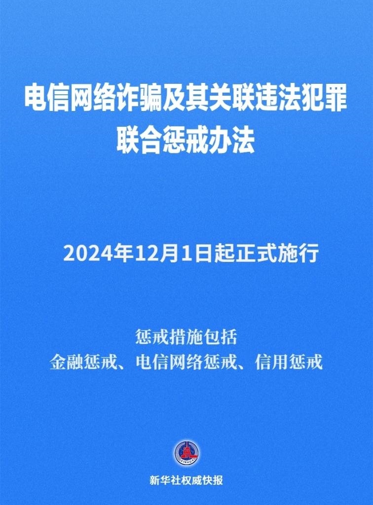 《電信網(wǎng)絡(luò)詐騙及其關(guān)聯(lián)違法犯罪聯(lián)合懲戒辦法》12月1日起施行
