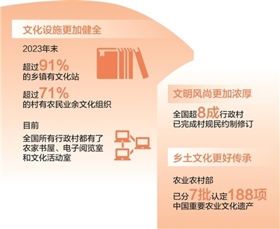 新時代以來,各地區(qū)各部門深入推進(jìn)農(nóng)村精神文明建設(shè)。加快完善鄉(xiāng)村文化設(shè)施,健全農(nóng)村公共文化體系,農(nóng)家書屋、鄉(xiāng)村文化禮堂等打通文化惠民“最后一公里”;發(fā)展群眾性文體活動,廣泛開展“村BA”“村超”“村晚”等,豐富鄉(xiāng)村精神文化生活,展現(xiàn)鄉(xiāng)親們積極向上的精氣神;培育挖掘鄉(xiāng)土文化人才,引導(dǎo)文化工作者、科普工作者、文化志愿者等投身鄉(xiāng)村文化建設(shè);賡續(xù)鄉(xiāng)村優(yōu)秀傳統(tǒng)文化,把對非遺的保護(hù)傳承和開發(fā)利用有機(jī)結(jié)合,將藝術(shù)與古村落、古民居的活化利用有機(jī)結(jié)合;持續(xù)推進(jìn)農(nóng)村移風(fēng)易俗,革除高價彩禮、人情攀比、厚葬薄養(yǎng)、鋪張浪費等陳規(guī)陋習(xí),反對迷信活動,推動形成文明鄉(xiāng)風(fēng)、良好家風(fēng)、淳樸民風(fēng);健全鄉(xiāng)村治理體系,有效發(fā)揮村規(guī)民約作用,推廣文明積分等方式,激勵農(nóng)民自覺踐行文明新風(fēng)……這些舉措為加強(qiáng)農(nóng)村精神文明建設(shè)提供了有力抓手,推動現(xiàn)代文明理念融入鄉(xiāng)村生活方方面面,為推進(jìn)鄉(xiāng)村全面振興注入新動能。