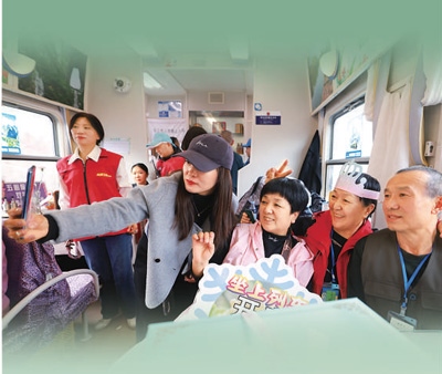 為讓銀發(fā)旅游更加精彩,銀發(fā)旅游列車不僅注重適老化改造,還通過特色主題表演,為老年游客帶來豐富的旅行體驗(yàn)。在Y471次熊貓旅游專列上,游客們可以欣賞到別具特色的川劇變臉。在黑龍江的冰雪旅拍主題旅游列車上,車廂內(nèi)融合哈爾濱各類景點(diǎn)進(jìn)行主題場景設(shè)計(jì),老年游客只需掃碼預(yù)約便可換上不同風(fēng)格的服裝在車廂內(nèi)拍照打卡。列車上,老年游客不僅樂趣十足,還留下許多美好回憶。