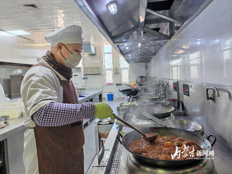 春節(jié)期間的桑根達(dá)來(lái)行車公寓后廚,廚師孫磊正在灶臺(tái)前忙碌著。面前一口碩大的鐵鍋內(nèi),醬色的四喜丸子在濃郁的湯汁里,散發(fā)著撲鼻的香氣。廚房升騰著陣陣煙火氣,蒸汽在玻璃窗上凝成水珠。灶臺(tái)上好幾口鐵鍋同時(shí)翻騰著——紅燒肉咕嘟冒泡,油燜大蝦亮紅誘人,燉牛肉飄來(lái)陣陣香氣,圓嘟嘟的餃子也即將下鍋。千家萬(wàn)戶團(tuán)圓之時(shí),這個(gè)草原深處的特殊驛站里,工作人員正用精心制作的特色美食,為堅(jiān)守崗位的鐵路人打造出別具溫情的團(tuán)圓飯。