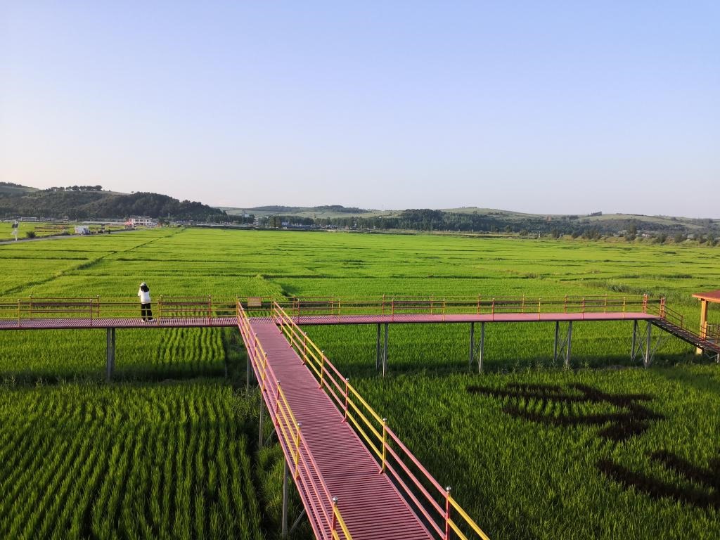2021年7月,延邊朝鮮族自治州和龍市光東村稻田景色。(新華社記者薛欽峰攝)