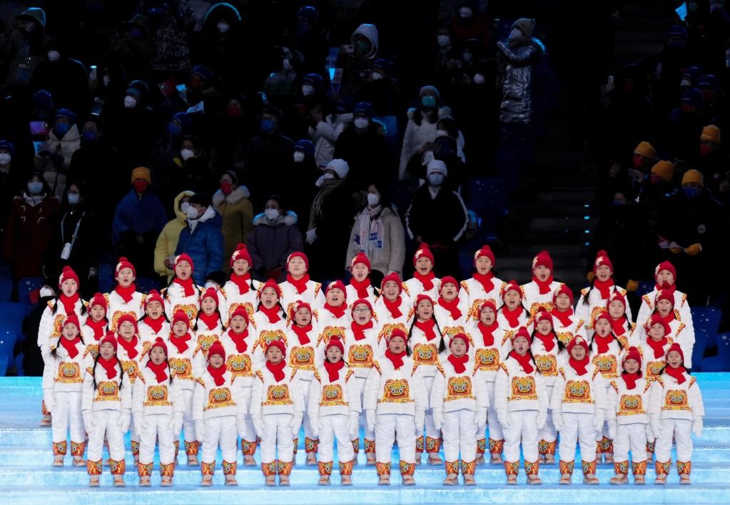 2月4日晚,第二十四屆冬季奧林匹克運(yùn)動(dòng)會(huì)開幕式在北京國家體育場(chǎng)舉行。圖為孩子們演唱奧林匹克會(huì)歌。新華社記者李安攝