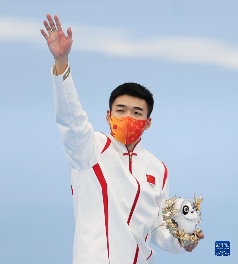 2月8日,短道速滑男子1000米比賽冠軍、中國選手任子威在獎牌頒發(fā)儀式上。新華社記者 鞠煥宗 攝