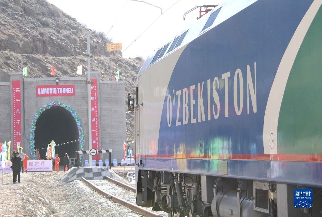 2016年2月27日,一列專列停在烏茲別克斯坦安格連-帕普鐵路卡姆奇克隧道進口。中國政府優(yōu)買項目、中鐵隧道集團承擔的中亞最長隧道——烏茲別克斯坦安格連-帕普鐵路卡姆奇克隧道2月27日全隧貫通。新華社記者 沙達提 攝