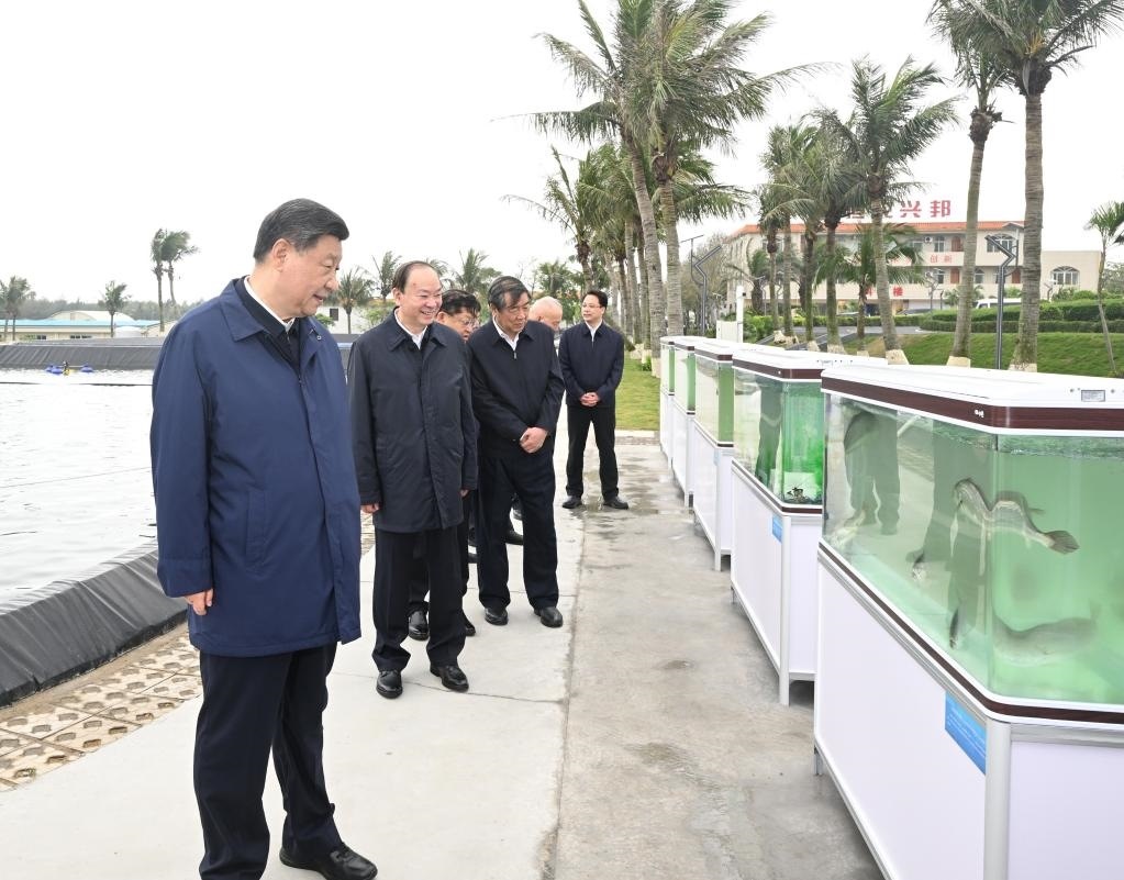 這是習(xí)近平總書記4月10日在廣東省湛江市國家863計劃項目海水養(yǎng)殖種子工程南方基地了解當?shù)匕l(fā)展海洋漁業(yè)情況。新華社記者 李學(xué)仁 攝