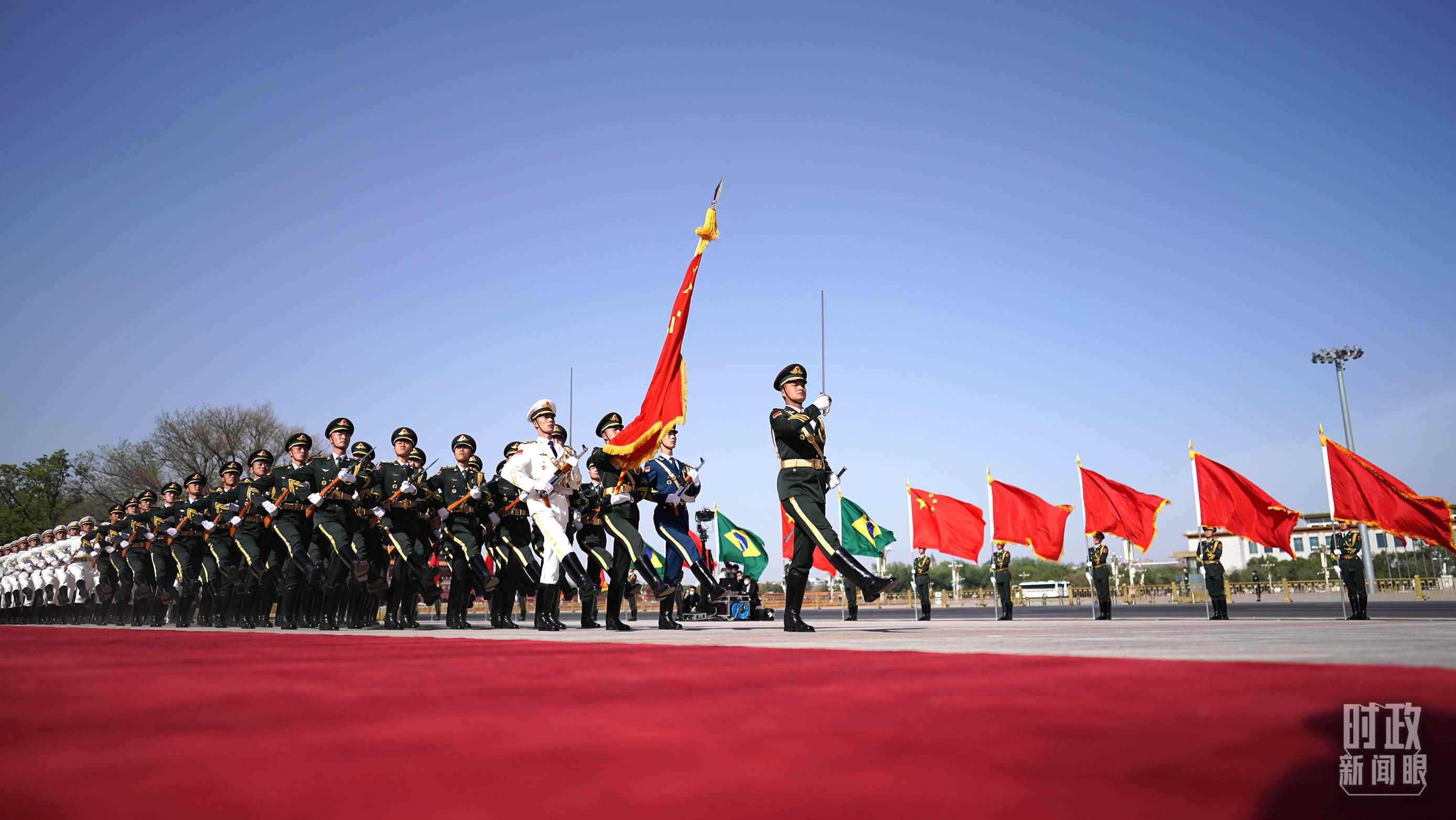 △歡迎儀式現(xiàn)場(chǎng)的中國(guó)人民解放軍儀仗隊(duì)。(總臺(tái)央視記者彭漢明拍攝)