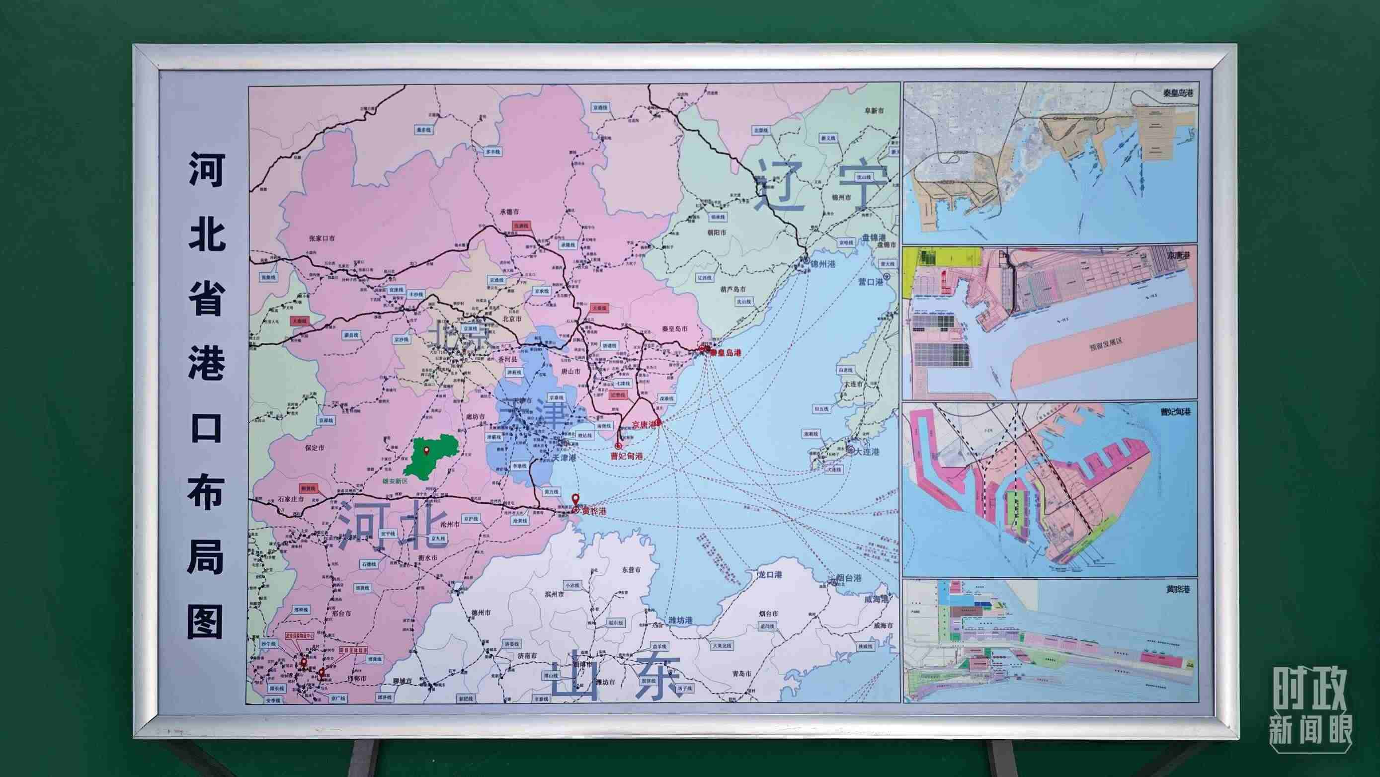 △河北省港口布局圖展示。(總臺央視記者彭漢明拍攝)