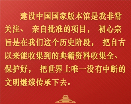 習(xí)近平強(qiáng)調(diào),建設(shè)中國國家版本館,是文明大國建設(shè)的基礎(chǔ)工程,是功在當(dāng)代、利在千秋的標(biāo)志性文化工程。