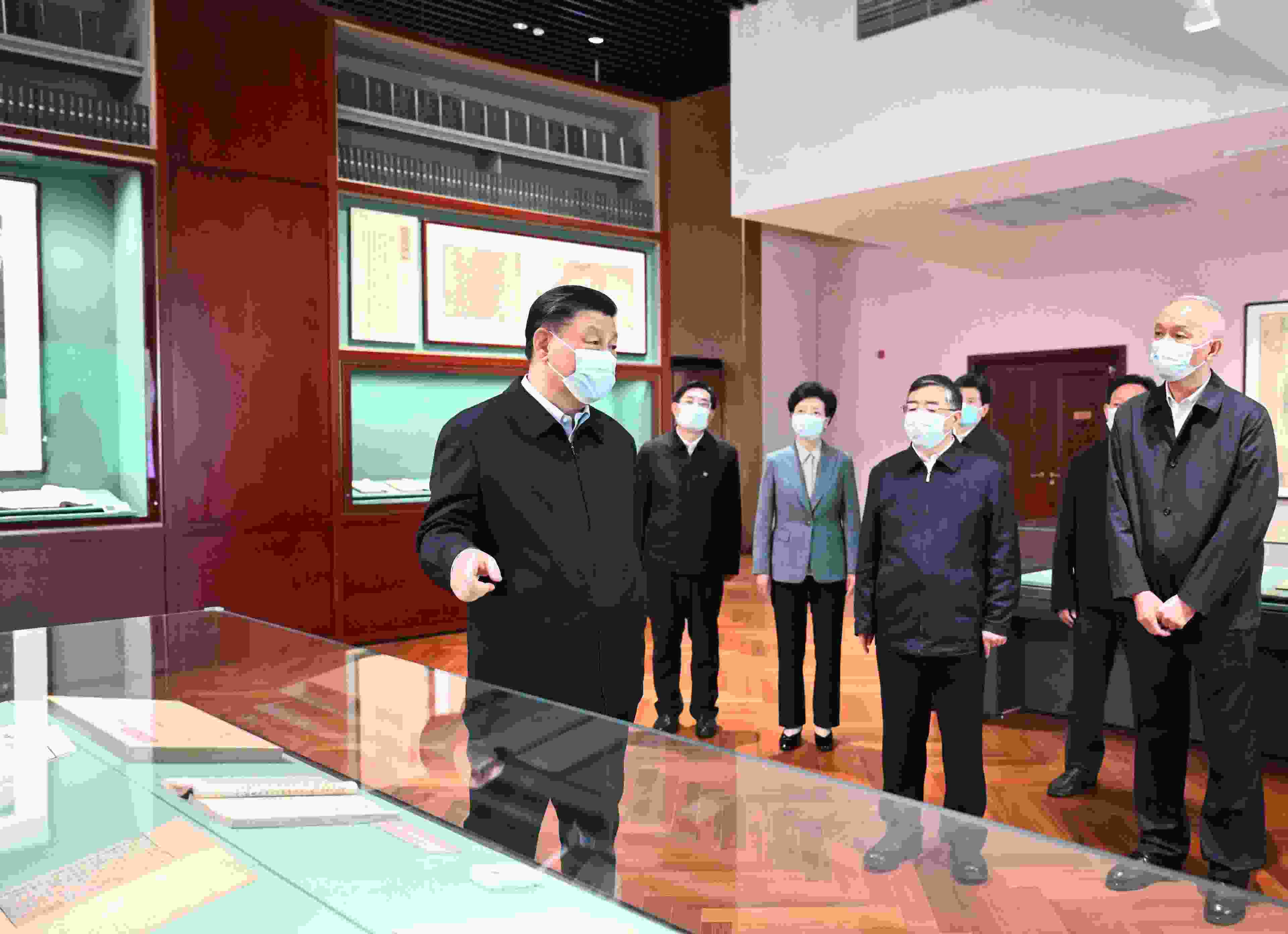 考察當天,習(xí)近平總書記首先走進文華堂,聽取版本館規(guī)劃建設(shè)有關(guān)情況介紹。