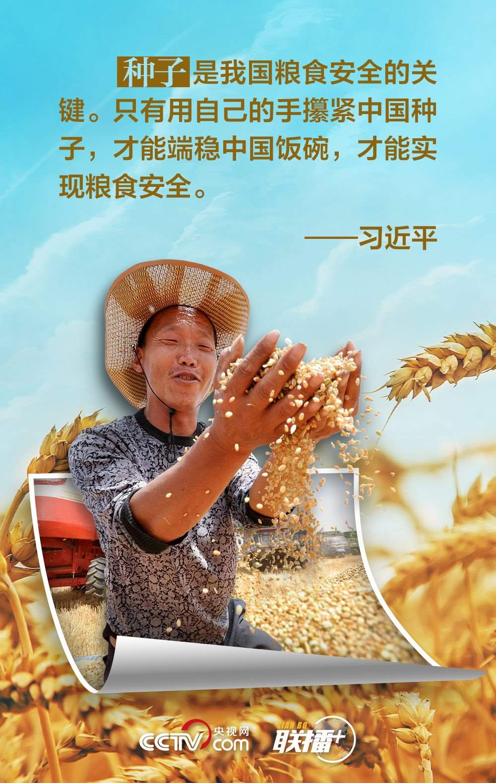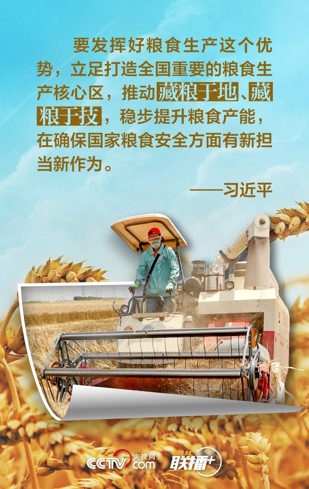 夏糧是全年糧食生產(chǎn)的第一季,約占我國全年糧食產(chǎn)量的五分之一,主要包括夏收的谷物、豆類和薯類等?!笆种杏屑Z,心中不慌?!绷?xí)近平總書記十分重視糧食安全,他強(qiáng)調(diào),中國人的飯碗任何時(shí)候都要牢牢端在自己手中,飯碗主要裝中國糧。值此夏收時(shí)節(jié),央視網(wǎng)《聯(lián)播+》與您一起學(xué)習(xí)領(lǐng)悟總書記的糧食觀。