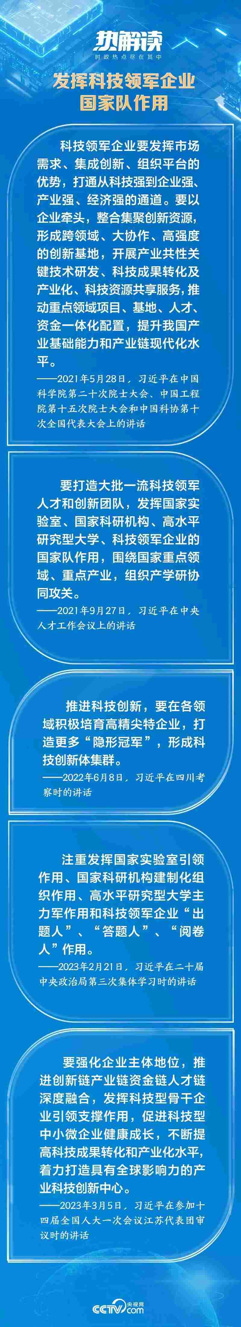 企業(yè)是市場(chǎng)的主體,是推動(dòng)科技創(chuàng)新的生力軍。作為國(guó)家戰(zhàn)略科技力量的重要組成部分,總書記對(duì)科技領(lǐng)軍企業(yè)更是寄予厚望:“要自覺履行高水平科技自立自強(qiáng)的使命擔(dān)當(dāng)”,要注重發(fā)揮“科技領(lǐng)軍企業(yè)‘出題人’、‘答題人’、‘閱卷人’作用”。