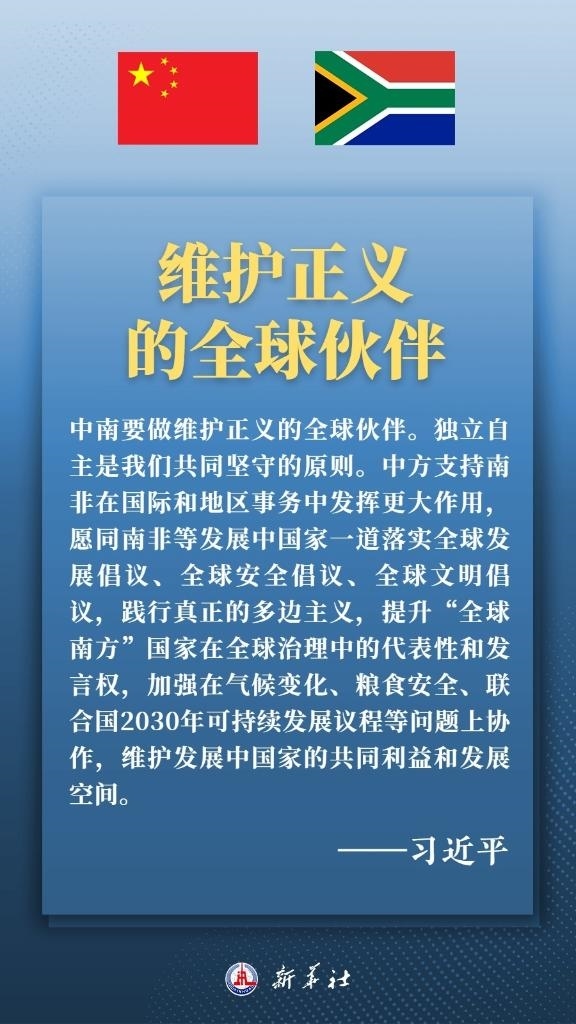 當(dāng)?shù)貢r(shí)間8月22日上午,正在南非進(jìn)行國事訪問的國家主席習(xí)近平在比勒陀利亞總統(tǒng)府同南非總統(tǒng)拉馬福薩會談。兩國元首就新時(shí)代中南關(guān)系發(fā)展以及共同關(guān)心的國際和地區(qū)問題深入交換意見,達(dá)成重要共識,一致同意,攜手推動中南全面戰(zhàn)略伙伴關(guān)系不斷邁上新臺階,攜手構(gòu)建高水平中南命運(yùn)共同體。