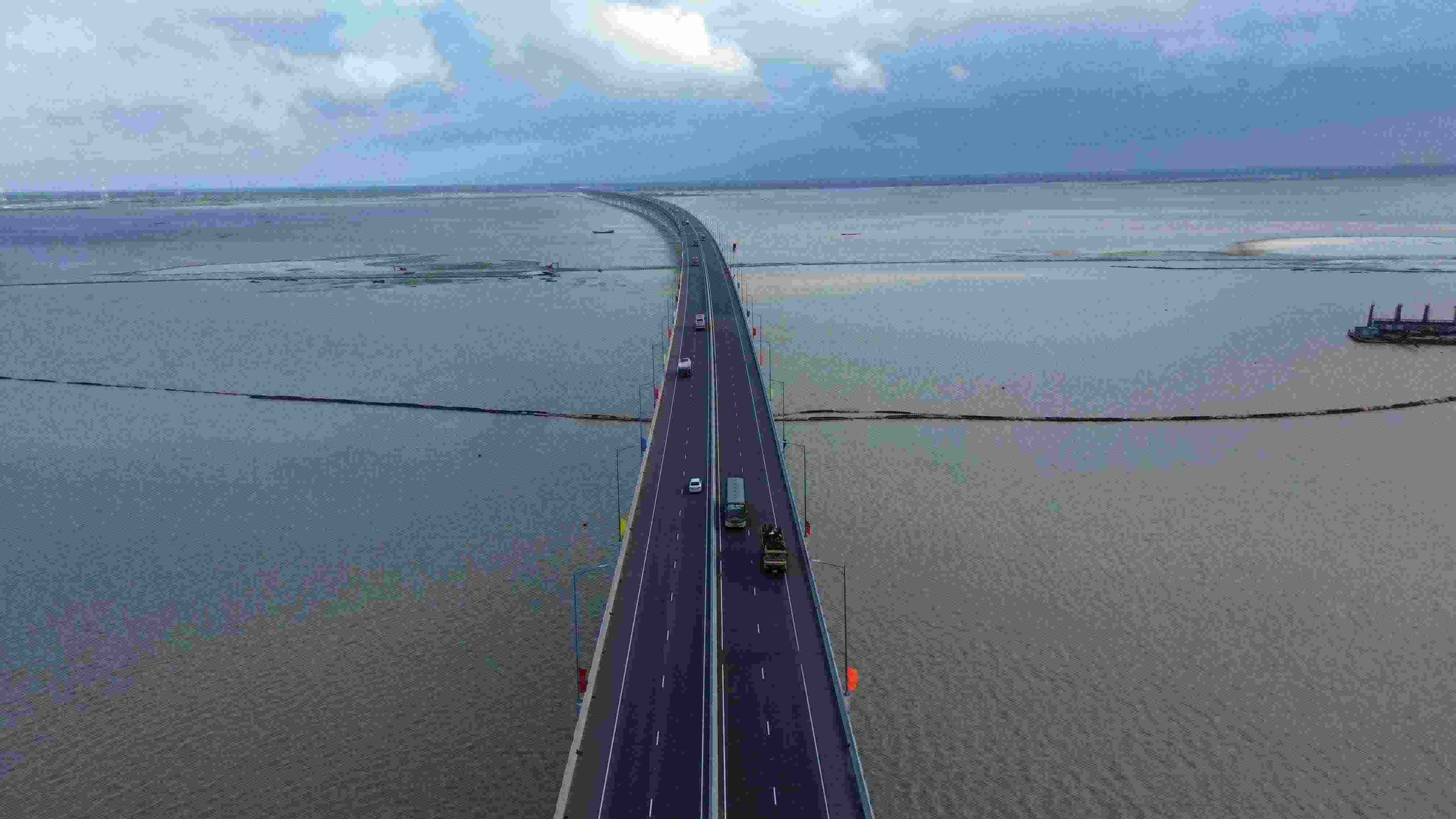 △2023年6月25日,位于孟加拉國首都達卡西南約40公里處的帕德瑪大橋。中企承建的孟加拉國最大橋梁項目——帕德瑪大橋,是連接中國及“泛亞鐵路”的重要通道之一。