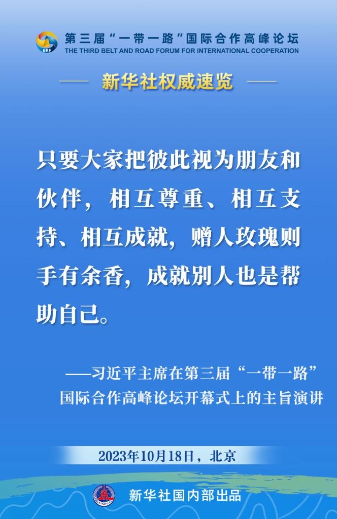 10月18日,國(guó)家主席習(xí)近平在第三屆“一帶一路”國(guó)際合作高峰論壇開(kāi)幕式上發(fā)表主旨演講。一起來(lái)看金句。