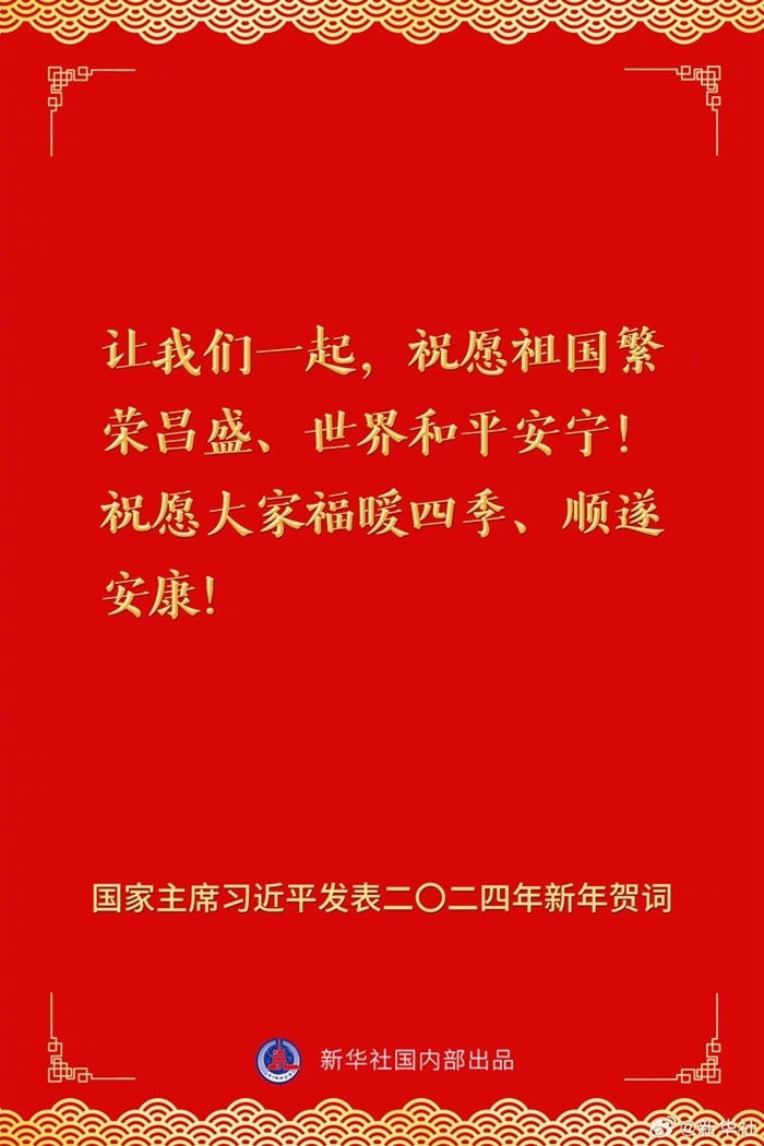 國家主席習(xí)近平發(fā)表二〇二四年新年賀詞,一起來看金句