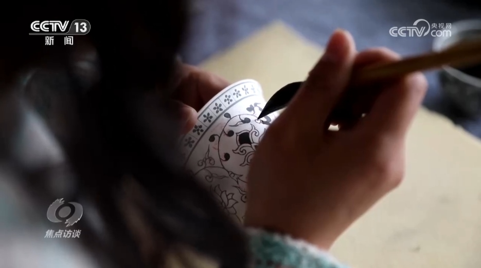 24歲的楊紫萱是孫立新的一位徒弟,去年6月,她開(kāi)始跟孫立新學(xué)習(xí)陶瓷繪畫(huà)技藝。