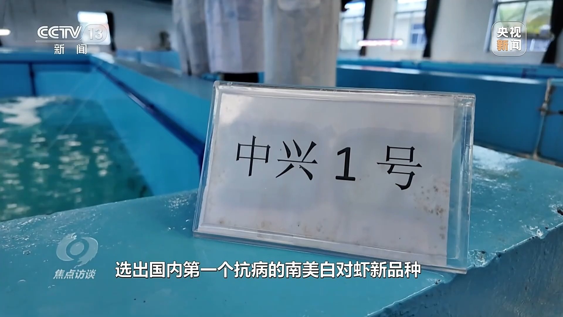 陳奕彬:“基地聯(lián)合中山大學,從多個區(qū)域引進多個種群,組成一個選育的基礎(chǔ)群體,又開始經(jīng)過一代群體選育,加上五代的家系選育,歷經(jīng)大概八代、十年的時間,終于在2011年的時候選出國內(nèi)第一個抗病的南美白對蝦新品種:中興1號?!?/p>
