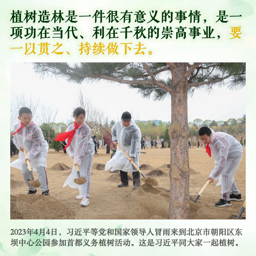 身體力行,持之以恒。此后的11個春天,無論晴雨,總書記都抽出時間加入植綠隊伍,并對國土綠化事業(yè)提出殷殷囑托。堅持,是12年來總書記反復(fù)強調(diào)的關(guān)鍵內(nèi)涵。